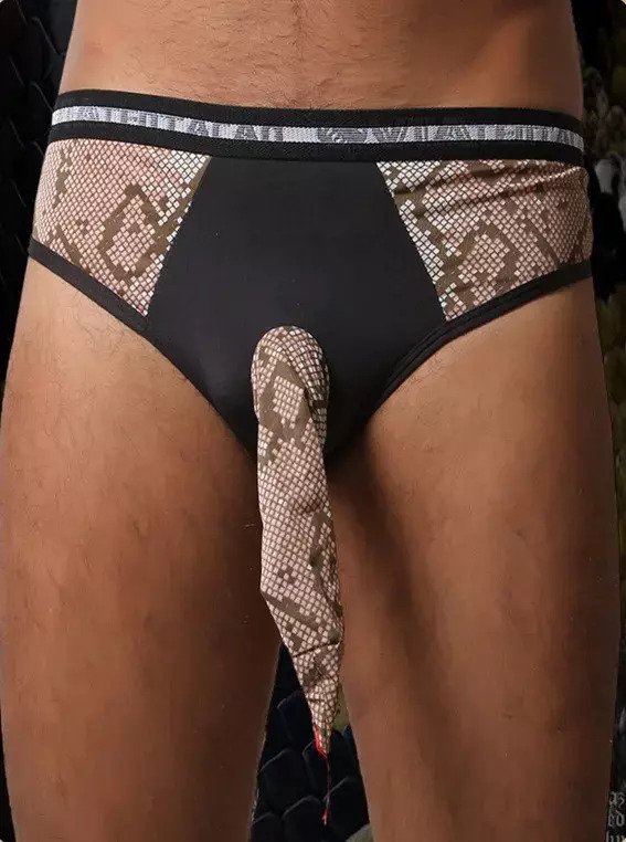 Dê um toque especial a sua vida íntima com esta deslumbrante cueca cobra, confeccionada em helanca, com cós alto na cintura e olho de vidro móvel, proporcionando uma experiência sensual e elegante. Destaque para a tromba de cobra, que remete a loucas travessuras e é um convite para o sexo oral. Sua modelagem exclusiva permite que se ajuste perfeitamente ao corpo, vestindo do tamanho P ao G. Modelo ideal para homens ousados que gostam de surpreender a pessoa amada e usar coisas diferentes.
