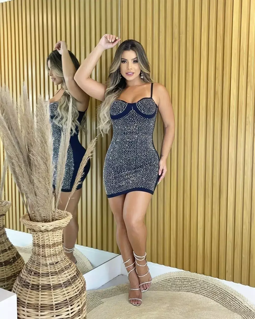O Vestido Curto Em Poliamida Com Pedraria Molise é a escolha perfeita para você que busca uma peça confeccionada em poliamida de alta qualidade, oferecendo um toque macio, caimento impecável e elasticidade ideal para valorizar suas curvas com elegância.